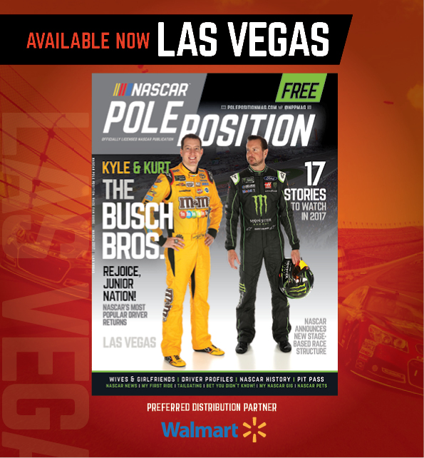 NASCAR Pole Position Las Vegas edition is now available. Please head to Walmart, or other area retailers that offer free magazines, to pick up your free copy. You can find a list of preferred retailers distributing NASCAR Pole Position here.